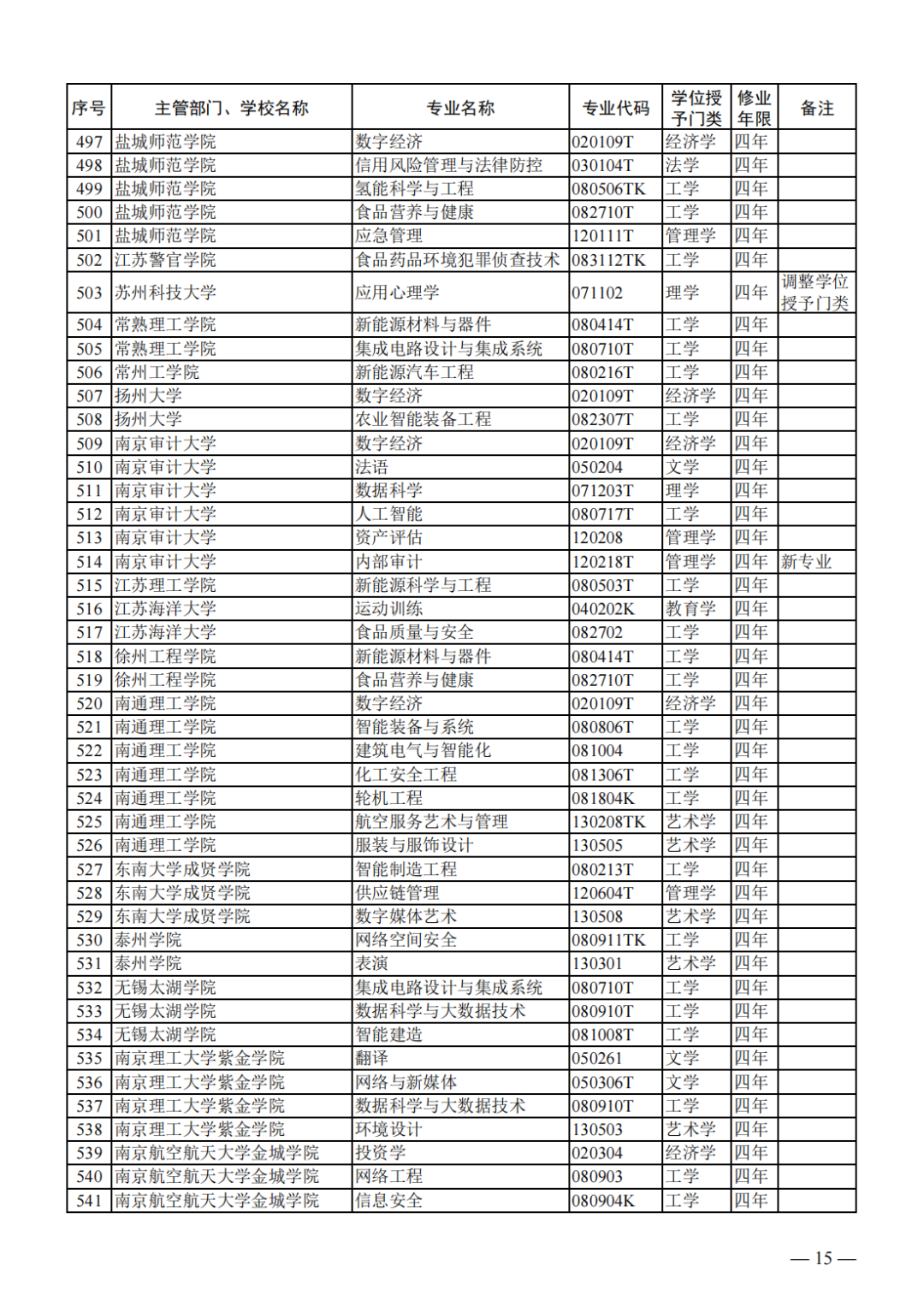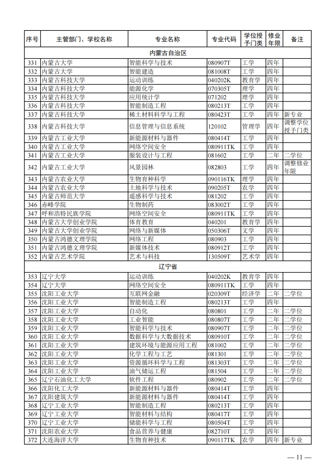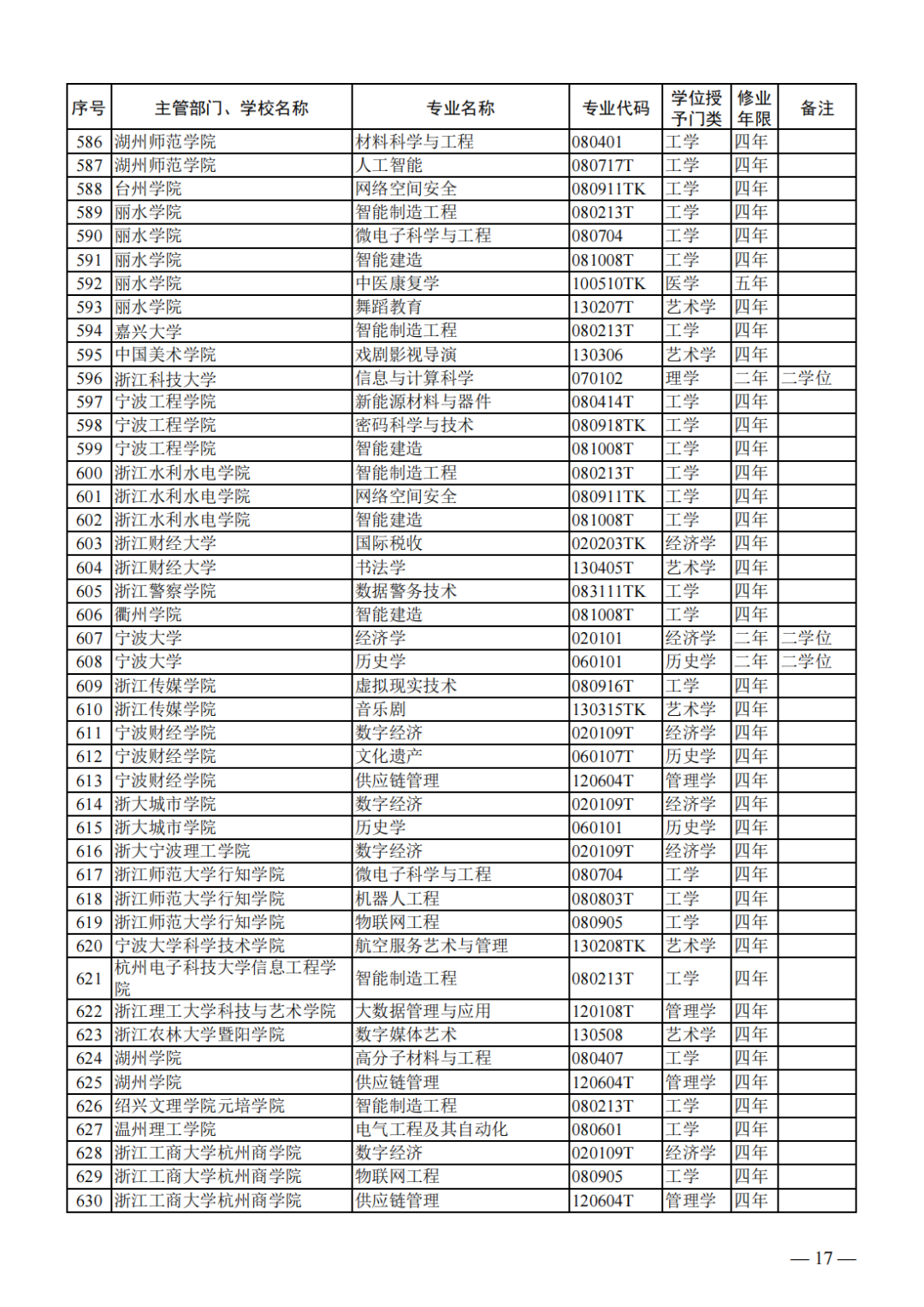 教育部关于公布2023年度普通高等学校本科专业备案和审批结果的通知