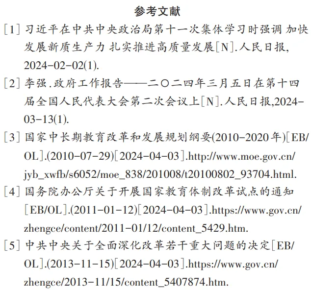 2024年1月,习近平总书记在中共中央政治局第十一次集体学习时强调,要按照发展新质生产力要求,畅通教育、科技、人才的良性循环[1]。2024年政府工作报告提出,实施高等教育综合改革试点。深化教育、科技、人才综合改革,为现代化建设提供强大动力[2]。深化高等教育综合改革再次提上重要日程。
